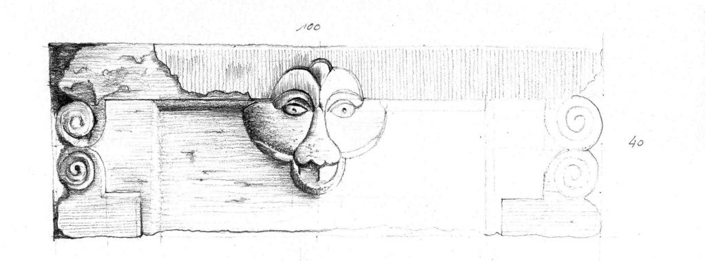 Daraus ergibt sich also, dass die Spolie einem vorh’irsauischen Bau auf Schönrain angehören muss. Hierauf deuten auch die in den umliegenden Gehöften eingemauerten (wohl umgekehrt eingemauerten !) Säulen, die noch näher zu betrachten sein werden.