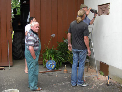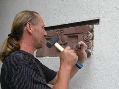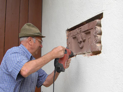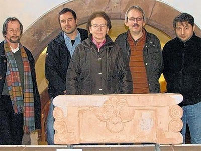 (wde) Das Spessartmuseum in Lohr ist um ein Ausstellungsstück reicher: einen mit einer Fratze verzierten Sturz eines Oberlichts, der vermutlich von der Ruine Schönrain stammt und wahrscheinlich an die 500 Jahre alt ist. Am Dienstag fand die offizielle Übergabe des Reliktes statt. Dass der sandsteinerne Sturz überhaupt im Museum gelandet ist, ist dem vor viereinhalb Jahren gegründeten Verein Gefährten Schönrains & Freunde (GSF) sowie der Familie Haas aus Massenbuch zu verdanken. Aber der Reihe nach. Laut GSF-Vorsitzendem Oliver Herrmann stießen die Gefährten Schönrains in den Schriften des Lohrer Geschichtsvereins auf einen 1974 verfassten Artikel über die Klosterruine Schönrain, in welchem Dr. Rudolf Kuhn eine kunsthistorische Analyse und Würdigung der Baureste vornahm. Aus diesem Text ging hervor, dass das Objekt in einem Haus oder einer Scheune entweder in Wiesenfeld oder Massenbuch eingebaut sein sollte. Und tatsächlich wurden die Gefährten Schönrains nach längerer Recherche bei der Familie Haas in Massenbuch fündig. Mit ihrer Zustimmung wurde das Überbleibsel längst vergangener Tage ausgebaut und ein Mitglied des Vereins, der Steinbildhauer Thomas Haupt (Firma Birk und Förster, Würzburg) machte laut Herrmann aus Steinersatzmörtel zwei Kopien des Sturzes. Eine davon wurde im Anwesen der Familie Haas eingesetzt, die andere soll laut Herrmann im Frühjahr in die Burgruine Schönrain eingebaut werden. Und das Original bekam das Spessartmuseum. Dessen Leiter Herbert Bald freute sich über die Leihgabe, die er als „interessantes Stück“ bezeichnete und dankte allen Beteiligten. Während Kuhn vor 35 Jahren davon ausgegangen war, dass es sich bei dem Objekt um einen Türsturz handelt, vermutete Bald am Dienstag aufgrund der Größe (zirka ein Meter mal 40 Zentimeter), dass es einmal der Sturz eines Oberlichts war. Außerdem widersprach er Kuhns Theorie, das Objekt sei älter als 800 Jahre. Bald datierte den Stein ins 16. Jahrhundert. Zum einen aufgrund des Motivs, zum anderen wegen des Zustands des Sandsteins. Laut Gertrud Haas war der Stein „schon immer“ in ihrem Anwesen in Massenbuch eingemauert. Ihr Vater, so berichtete sie lachend, habe die Fratze als Kind mit Dreck beworfen und dabei gesagt „guck nicht so dumm“.
