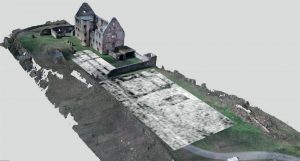 Aus diesem Grund wurde im Frühjahr 2021 vom BLfD eine Bodenradarmessung aller zugänglichen Bereiche des Plateaus durchgeführt. Dieses geophysikalische Verfahren versprach bei den zu erwartenden Steinbefunden die besten Resultate. Zusätzlich wurde noch eine Magnetometermessung vorgenommen, um zumindest Hinweise auf etwaige weitere Befunde aus Holz bzw. verfüllte Gräben und Siedlungsgruben zu erhalten. Zudem wurde die renaissancezeitliche Ruine mittels Drohne in 3D dokumentiert, um die geophysikalischen Daten direkt in Bezug zu den Ruinenresten setzen zu können.