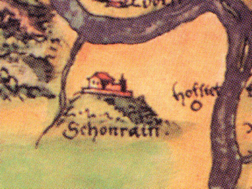 aus alten Unterlagen und Archiven ist zur klösterlichen Vergangenheit relativ wenig bekannt. Der Umfang der alten Säulenfragmente ließ auf die ungefähre Größe der ehemaligen Klosterkirche schließen (Vergleich mit Kirche Aura a.d.Saale), aber weder die Lage noch die Bauart der Kirche waren beschrieben. Auch alte historische Karten, wie der links abgebildete Ausschnitt aus dem Pfinzing-Atlas von 1594 liefern leider keinerlei verlässliche Informationen.